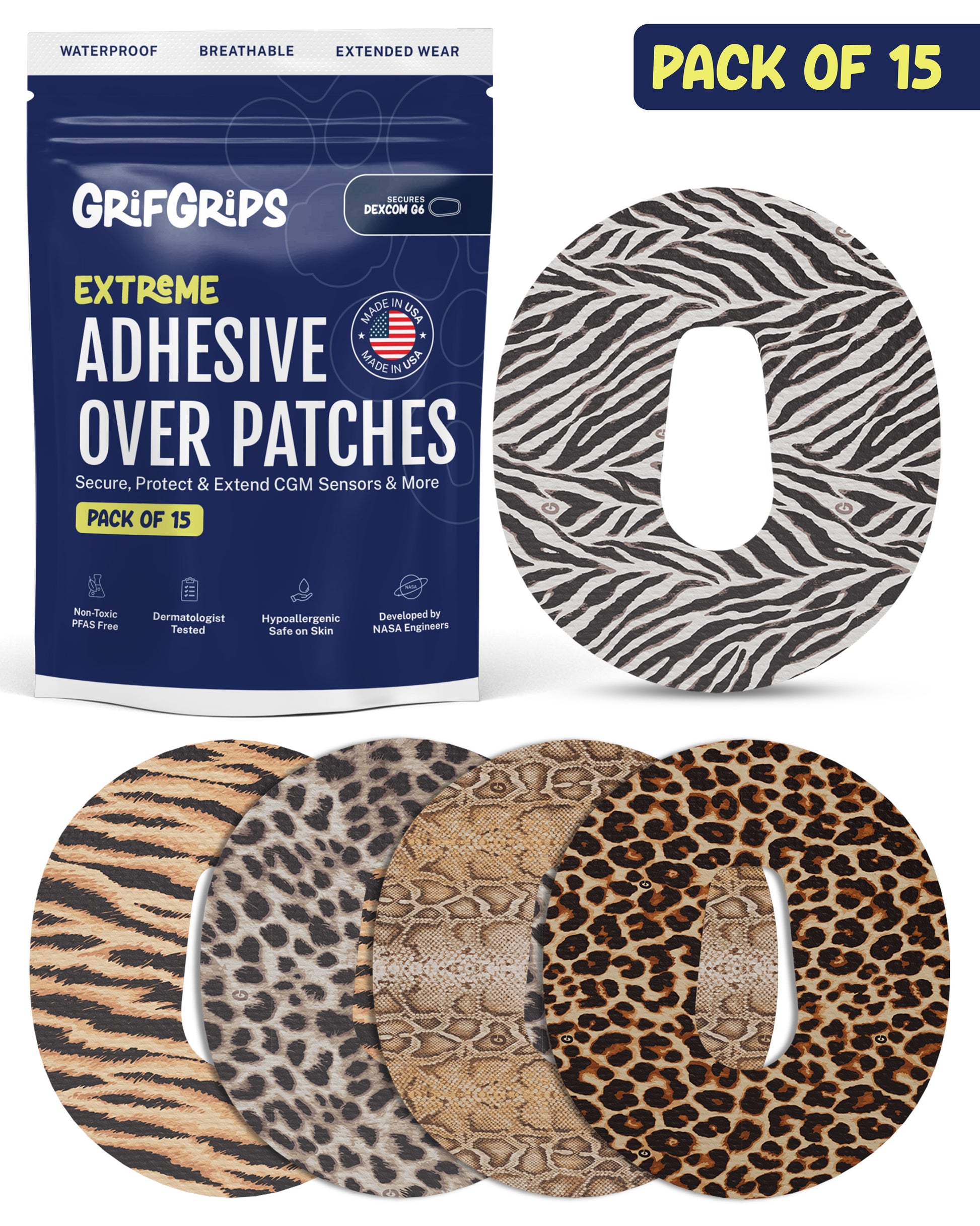 EXTREME - Dexcom G6 Adhesive Patches - Animal Prints (15 Pack)